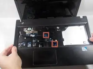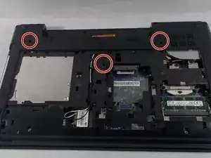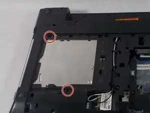 Удалите два винта Phillips #0 2.5 x 4.0 мм с нижней стороны ноутбука.