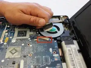 Снимите последнее соединение, соединяющее материнскую плату с основанием ноутбука.