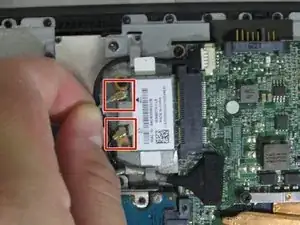 Отодвиньте карту Wi‑Fi от материнской платы и аккуратно извлеките её.