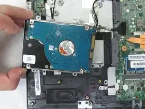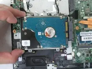 Отодвиньте жёсткий диск от материнской платы до полного извлечения.