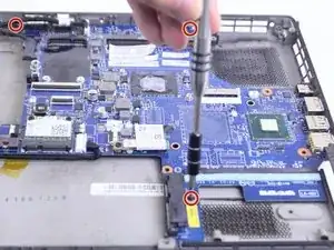 Используйте крестовую отвертку Phillips #000, чтобы выкрутить три винта M2 x 2 мм по бокам материнской платы.