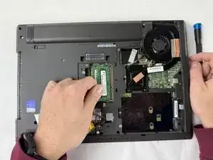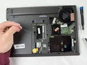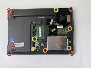 Ослабьте четыре винта крепления на нижней панели ноутбука с помощью отвертки Phillips #0.