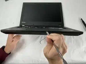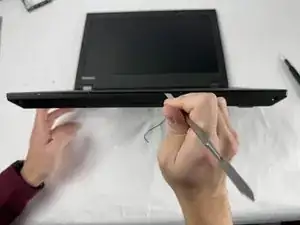 Вставьте металлическую лопатку в зазор между корпусом и остальной частью ноутбука.