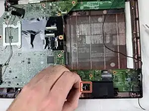Отсоедините чёрный кабель дисплея от материнской платы.
