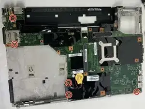 Уберите пять винтов, удерживающих материнскую плату.
