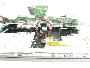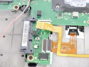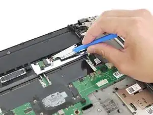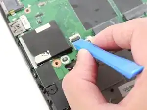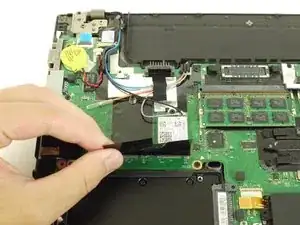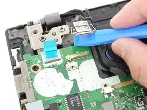 Отключите кабель дочерней платы и кабель дисплея с помощью пластиковой инструмента для вскрытия.