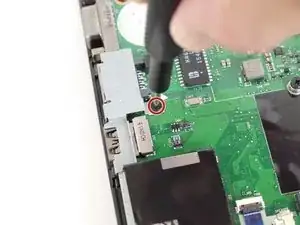 С помощью отвёртки JIS #00 удалите один 2,8 мм винт с материнской платы.