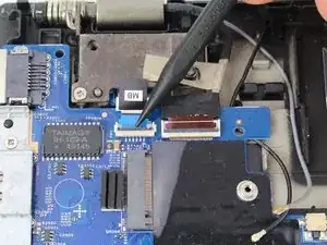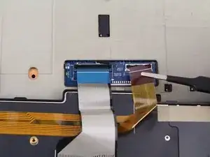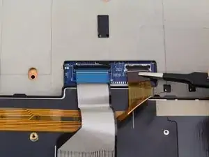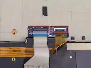 Используйте пинцет с тупыми концами, чтобы вытащить два ленточных кабеля клавиатуры из ZIF-коннекторов.