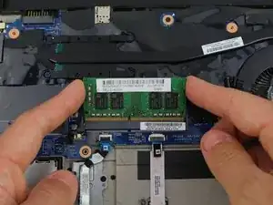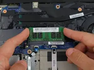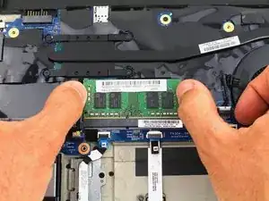 Оттяните двумя пальцами защёлки по обеим сторонам планки оперативной памяти наружу.