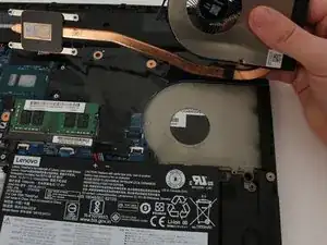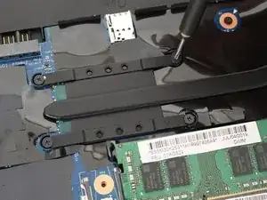 Отверткой Phillips #00 отвинтите пять винтов 4.6 мм, крепящих вентилятор и тепловую трубку.