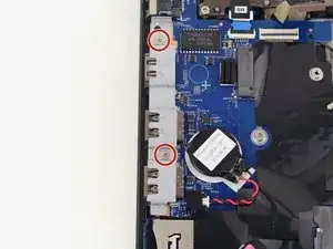 Отверткой Phillips #00 снимите четыре винта длиной 3,6 мм, удерживающие кронштейны портов справа и слева от платы.