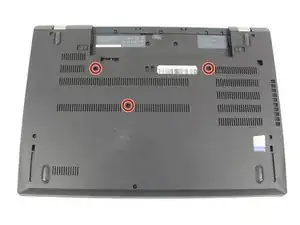 Отверткой Phillips #00 отвинтите восемь захваченных винтов 3.3 мм на нижней стороне ноутбука.