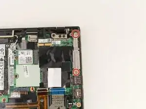 Используйте крестовую отвертку Phillips #00, чтобы выкрутить каждый из четырёх оставшихся винтов 3 мм, фиксирующих материнскую плату к корпусу.