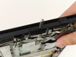 Поместите лопатку под кабели, чтобы отсоединить их от карточки WLAN.