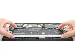 Используйте крестовую отвёртку Phillips #0, чтобы удалить шесть винтов длиной 4,9 мм, фиксирующих аккумулятор.