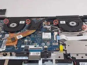 Снимите четыре винта 1.5 мм, крепящие вентиляторы, с помощью отвертки Phillips #00.