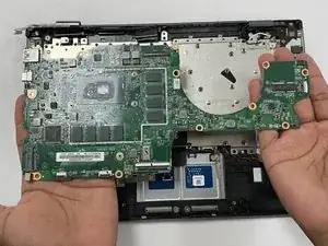 Будьте осторожны при замене материнской платы — вы можете поранить руки. Аккуратно обращайтесь с компонентами на материнской плате при её извлечении из корпуса, чтобы не повредить другие детали ноутбука.