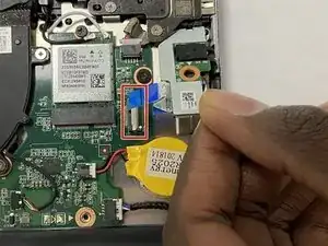 Отсоедините провода аккумулятора от разъёма на материнской плате над аккумулятором.