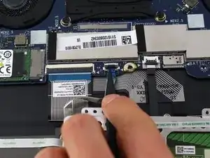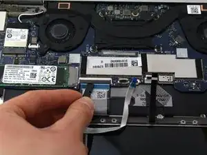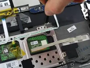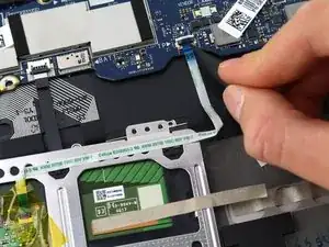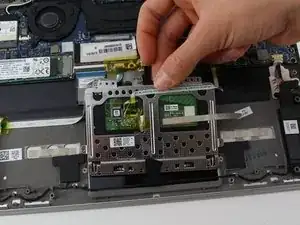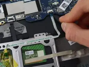 Отклейте кабель датчика отпечатка пальца, приклеенный сверху тачпада.