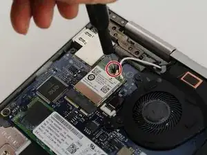 Используйте крестовую отвертку Phillips #00, чтобы удалить 2,5‑мм винт, фиксирующий сетевую карту.