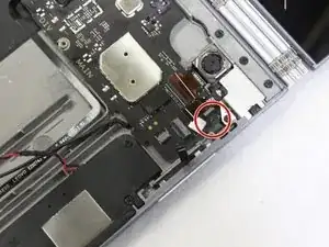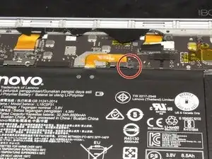Отсоедините кабель батареи от материнской платы.