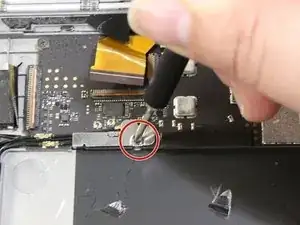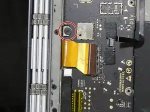 С помощью отвертки JIS #00 отвёрните один винт длиной 8 мм и снимите пластину с материнской платы.