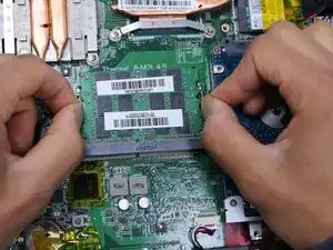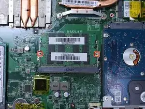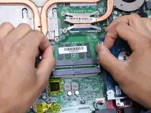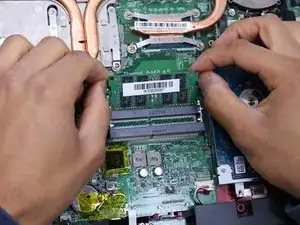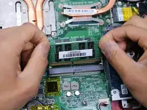 Нажмите на зажимы по бокам модуля оперативной памяти, как показано на изображении, чтобы разблокировать его.