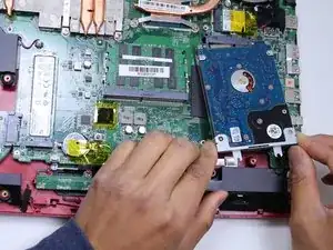 Аккуратно вытащите жёсткий диск, покачивая его из стороны в сторону, пока он не выйдет.