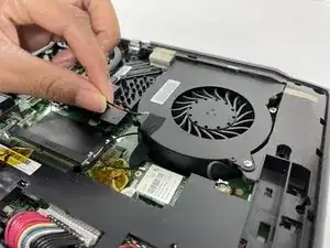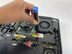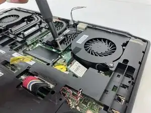 Удалите винт 3,6 мм внизу правого вентилятора, используя отвертку JIS #2.