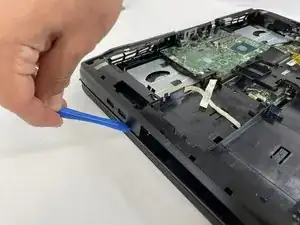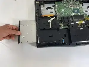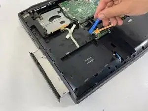 Используйте инструмент iFixit для вскрытия, чтобы подать заднюю часть дискового привода и выдавить его из корпуса ноутбука.