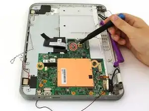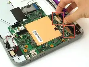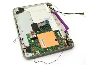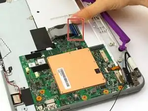 В этом руководстве подробно описано, как безопасно извлечь материнскую плату из ноутбука One Education Infinity. Номер модели Infinity — A03. Это устройство можно распознать по тёмно-серому корпусу, светло-серой внутренней части, фиолетовой ручке для переноски и поворотной камере над экраном.