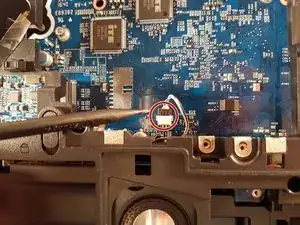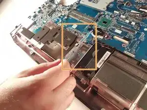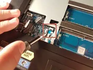 Поднимите крышку, удерживающую разъём, обведённый красным