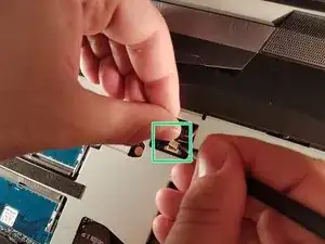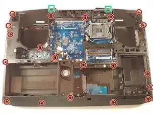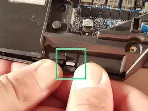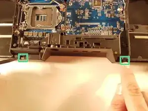 Отсоедините край корпуса в двух местах, выделенных зелёным.