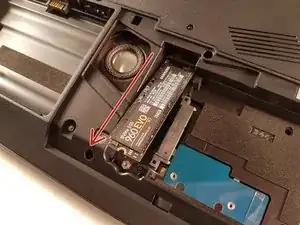 Поднимите батарею, одновременно открывая замок, обведённый красным.