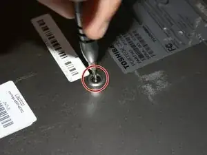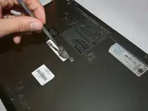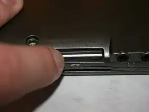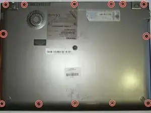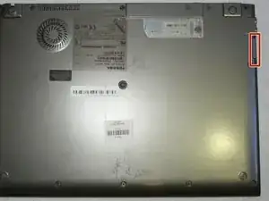 Переверните ноутбук экраном вниз, чтобы получить доступ к нижней панели.