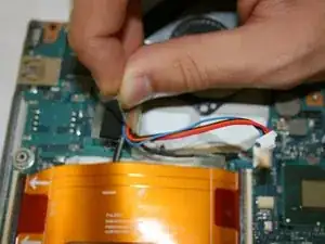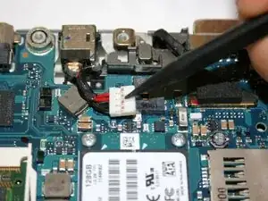Снимите кабель питания CMOS (красно/чёрный) из его разъёма, используя нейлоновую лопатку.