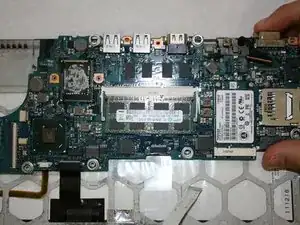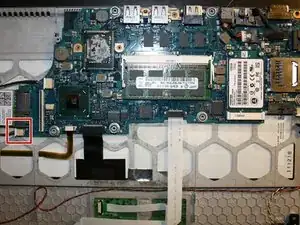 Удалите один винт Phillips #0 длиной 3 мм с верхней части материнской платы.