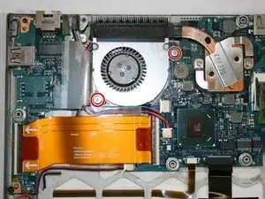 Отвинтите два винта 5 мм, крепящие вентилятор, используя отвёртку Phillips #0.