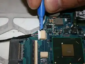 Отключите разъём от материнской платы с помощью пластикового инструмента для вскрытия.