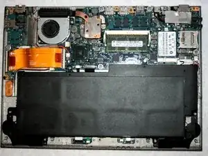 Не снимайте батарею полностью, она по‑прежнему подключена через разъём в правом верхнем углу.