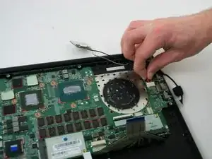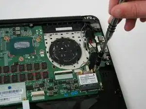 Отключите провод, идущий от вентилятора к белому разъёму, но оставьте провод прикреплённым к самому вентилятору.