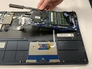 После извлечения кабеля вы можете снять вентилятор с ноутбука.