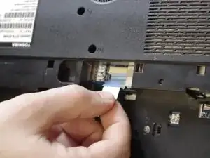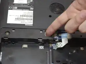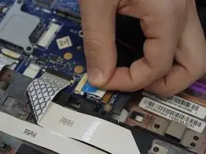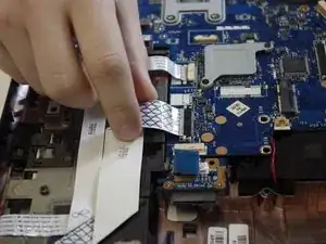 Отключите два ленточных кабеля, соединяющие клавиатуру с ноутбуком.