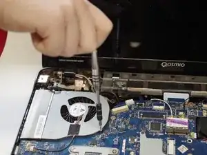 С помощью отвертки Phillips #00 открутите четыре винта, крепящие узел вентилятора к ноутбуку.