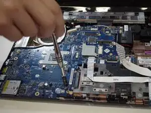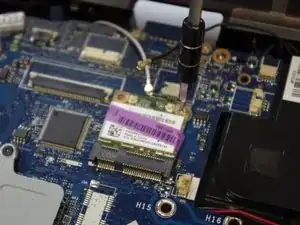 С помощью отвертки Phillips #00 снимите четыре винта, крепящие материнскую плату к ноутбуку.