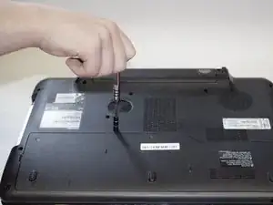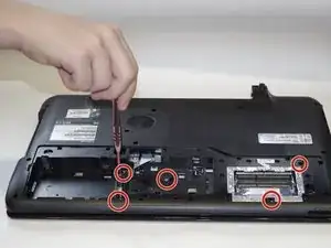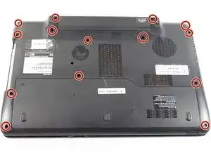 С помощью отвертки Phillips #00 снимите оставшиеся четырнадцать винтов с нижнего корпуса ноутбука.