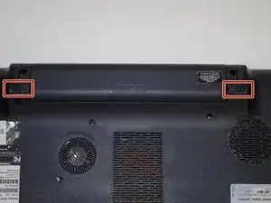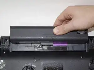 Одновременно сдвиньте оба фиксатора наружу, чтобы освободить батарею.