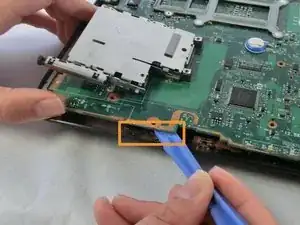 Осторожно подденьте пластиковым инструментом для вскрытия и проведите им под и вокруг материнской платы.