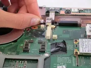 Осторожно вытяните маленький белый ленточный кабель из его гнезда на материнской плате.