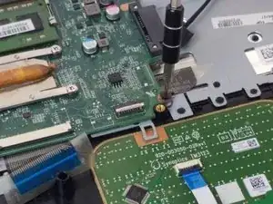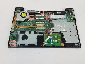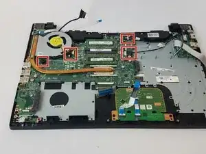 Открутите семь винтов PH1 Phillips длиной 3,0 мм, удерживающих материнскую плату на месте.